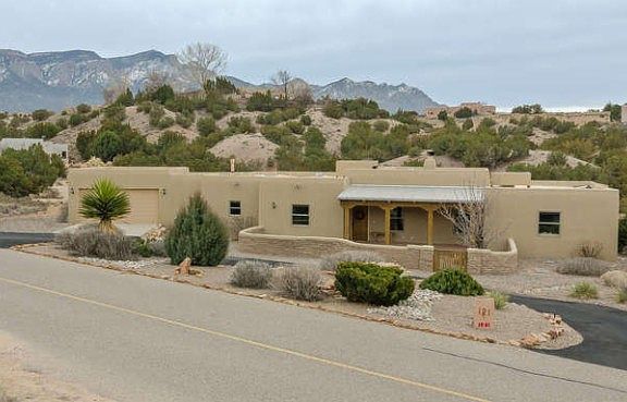 Come see this lovely home with wonderful access to I-25. Beautiful front and back courtyards with mature landscaping. Open floorplan in living room, dining room and kitchen. Bedrooms are spacious and closet space is plentiful. Views of Sandia's and downtown are right out your livng/dining and master bedrooms. This is an affordable Placitas worth seeing. Very well maintained with the southwest flair. Single owner