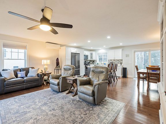 Nestled in a coveted Saco neighborhood is a like new 2016 colonial boasting 4-bedrooms, 2.5 bathrooms, and a heated 2-car garage. Step inside off the front porch and through the front door and be greeted by an open-floor plan flooded with natural light. Fall in-love with this kitchen featuring soft-close cabinets, white quartz countertops, recess lighting, and newer black stainless-steel KitchenAid appliances. Cozy up this winter next to the gas-fireplace in the open living room. Upstairs find 3-bedrooms including a primary with walk-in closet and an ensuite that offers a tiled shower and vanity with quartz counters. Need more room? This home has you covered with a large and open bonus room that could also be used as a bedroom or second living room. Dry basement giving you ample amount of storage. Outside is perfect for place to entertain your friends and family with the stamped patio and large back yard. Home has many updates including wood and tile flooring throughout, newer paint including basement walls and floor, and heat pumps and A/C. Convectively located only 1-mile to Hannaford, 5-minutes to beaches, 20-minutes to Portland, and 90-minutes to Boston. Call today for more information!