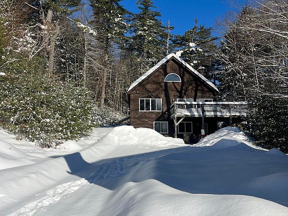 RARE approximately 300 feet walk to ski in and ski out on Mohawlk Trail, on the sunnyside side on Pleasant Mountain in Bridgton ME!!! This custom-built cabin is located on Pleasant Mountain, now Boyne Resorts. This 3-level home boasts large bright sunny bright expansive windows, a massive stone fireplace, an eat-in kitchen, and a private backyard. This spacious home has 4 bedrooms, a downstairs seating area, 2 full baths, a 1/2 bath, and a game area on the third level. A new roof was installed, engineered flooring on the first level, and freshly painted interior. Recently painted exterior, new entry stairs, and new hot water tank. Granite counters in the kitchen and baths were installed in 2016. Will include furnishings and all housing items, with the right offer. Ready and TURN KEY for Airbnb or short-term rentals. Fully stocked kitchen, linens, TVs, towels, air conditioners, and more. Or move right into your private mountain oasis. Too many amenities to list. The stars at night in summer or winter will take your breath away as inhale fresh mountain air.