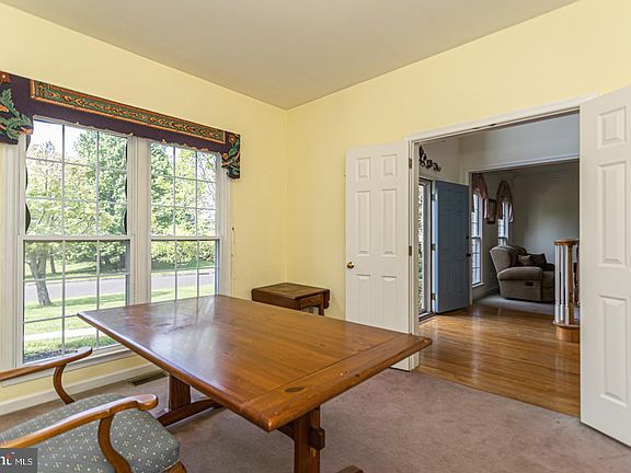Looking for the award-winning Council Rock School District? This stately, brick front colonial built by David Schrenk offers endless possibilities and can be found in the sought-after neighborhood of The Meadows of Holland. Nestled perfectly on a large prime lot, this sprawling 4 bedroom, 3 full bath home offers great space and sizeable yard. Step into the light-filled, 2-story entrance way with its turned wood staircase and hardwood floors and explore the seamless entertainment flow beginning with the bordering, bright formal Living Room with crown molding and 9ft. ceilings offering picturesque views of the front yard. The neighboring tray ceiling Dining Room is draped with wainscoting and opens to the expansive Kitchen featuring plenty of prep space, pantry, abundance of cabinetry, and a vaulted breakfast area framed by windows allowing for desired natural lighting. Enjoy the Family Room decorated with a striking floor-to-ceiling stone gas fireplace, beamed cathedral ceiling, and access to a deck through a set of sliders. Just down the hallway a Study could be easily transformed into a fifth bedroom if need be with a convenient connecting full hallway bath and double door entrance. A laundry room with utility sink and storage, as well as basement and garage access off the kitchen complete this main level. The upper level features a Primary Suite with tray ceiling and a connecting double door main bath with vaulted ceiling, double vanities, private water closet and an enormous walk-in closet. 3 additional bedrooms can be found on this level and full bath. Travel downstairs where you will find a partially finished lower level allowing for extended living space options and/or additional storage. The attached 3-car garage offers plenty of space for storage or to conduct your workshop projects. The backyard is sizeable and private with a mature backdrop making it ideal for family picnics and gatherings. Come pay a visit to see all this home has to offer and its excellent potential in a comfortable country landscape.