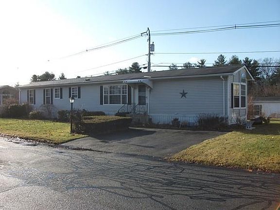 Great mobile home in 55+ community. Two bedrooms, two full baths, this bright and sunny mobile home boasts an oversized living room, kitchen with tons of cabinet space and breakfast bar. The laundry room has storage cabinets, large master bedroom with double closet , master bath with skylight, garden tub and double sink vanity. The second bedroom offers a beautiful picture window and is located next to the second bathroom. This has a great set up for privacy, bedrooms are at separate ends of the home. There is a sundrenched three season room with exterior access. Two car driveway, storage shed and lots of room to garden, this home has everything you need. Park fees include water, sewer, trash removal, street plowing, property taxes.
