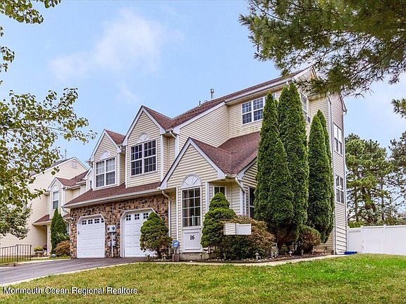 Welcome! You've arrived at your Home Search Destination! Ramtown Knolls is a cul de sac community offering townhome style living w/o the restrictions & fees of a HOA! This end unit location offers privacy as it has a vinyl fence and a backyard that backs to woods.Stepping inside you will be greeted with four finished levels of living, the main level features woodgrain tile flooring throughout, vaulted ceilings w/ a cozy fireplace in the family room, a kitchen w/ upgraded cabinetry gorgeous granite countertops & a center island and a dining room with french doors leading to your oversized deck.On the top two floors you will find an owner's suite, additional bedroom and full bath and a Jr. suite. Last but not least is a full finished basement perfect as a gym, home office & game nights. Additional features are a security system and unground sprinklers.