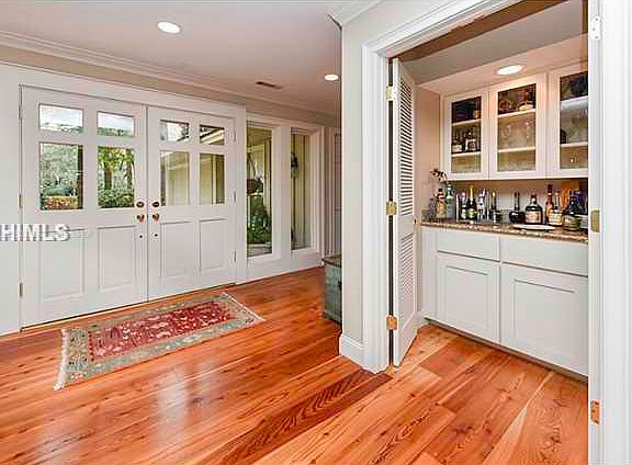 This beautiful home is a 4 BR, 4 BA single level home in Sea Pines. A very private location on the 15th fairway of the famous harbour town golf course with the 14th hole just steps from the drive way. Completely updated interior has beautiful features including skylights, hardwood floors, Savannah brick fireplace, all stainless steel appliances gas stove, granite counter, and a wet bar. The master bedroom is beautiful. Features huge walk in closet. Bathroom has shower, Jacuzzi, and a double vanity. Fully landscaped with feature lighting, sprinkler system, live oaks, and a free form lite pool.