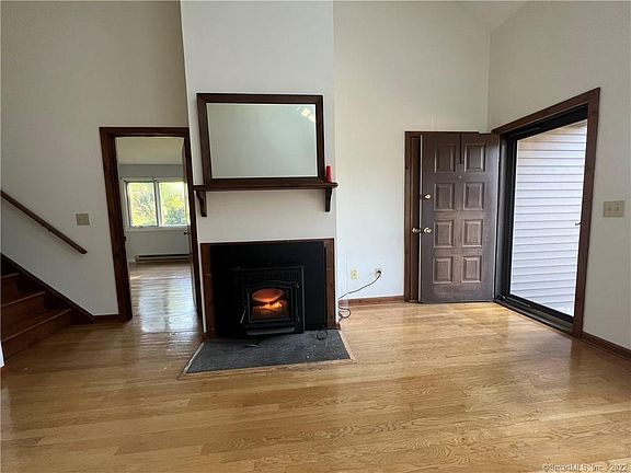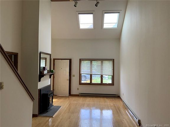 End Unit... NO Steps... Convenient close to town... Easy New York commute! Filled with with natural sunlight, located in small, quiet complex. Hardwood floors, vaulted ceilings and skylights throughout. Living room dining room combo, with pellet stove for those cold winter days and nights, main level bedroom with full bath and 2 walkin in closets, huge master bedroom with full bathroom, 2 walk in closets, office area with terrace, tons of storage with full basement with laundry room, bonus attic for extra storage and a one car attached garage.