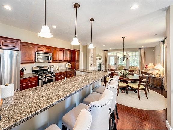 Welcome to 16 Twin Oaks Drive at Southport, featuring the highly desired Hyannisport-style floor plan. This end unit has been meticulously upgraded to blend comfort with sophistication. An open floor plan designed for convenience, this Hyannisport offers a spacious kitchen w/ ample storage, an expansive breakfast bar, stainless steel appliances, granite counters, & upgraded cabinets w/ under cabinet lighting. Custom built-ins surround the gas fireplace creating a cozy yet refined living area. Sunlight flows through every oversized window adorned w/ custom treatments. A light & bright sunroom provides a tranquil retreat year-round. The primary suite's seamless design offers a private full bath w/ walk-in shower, walk-in personalized & upgraded closet, & adjacent laundry room. A separate guest area includes a private bath & large walk-in closet. The open staircase leads to a versatile finished space. Added bonus: one car garage & adjacent guest parking.