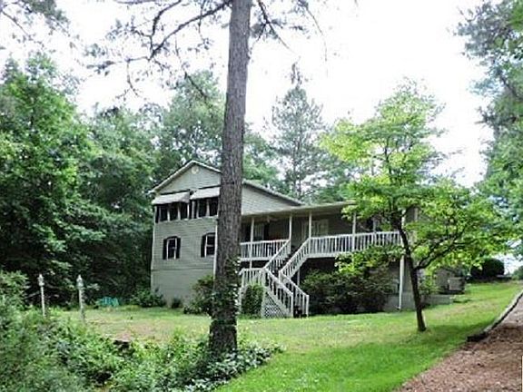 120 feet of Year Round Water! 3BR/2.5BA home with bonus den that could be a great master bedroom suite! The upstairs is being used currently as a den and there is a gorgeous view from the wall of windows! The fireplace is perfect for the fall evenings on Lake Wedowee. The main level living and kitchen are open concept . Walk out French doors to covered porch and enjoy the nature surrounding you on the lake! Concrete drive to the dock that floats on year round water! Plenty of storage area. Attached garage. This is a perfect getaway from your busy life that you can transform into your forever home on Lake Wedowee! More pics later!