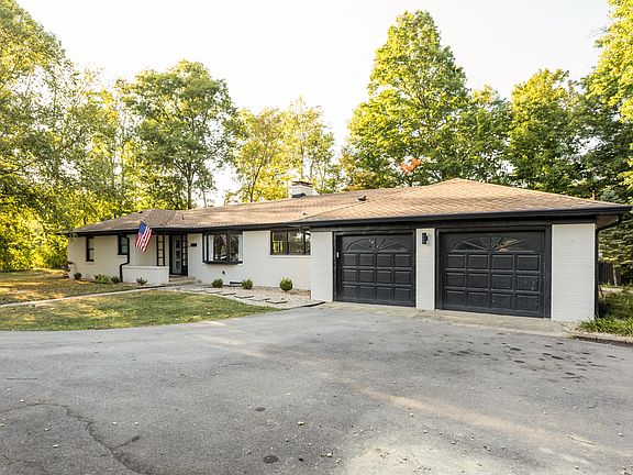 Are you looking for a home with a large lot, park-like feel, trail access, that is also in the heart of all that Brownsburg offers?! This is it! Beautifully updated 4-bedroom, 2-bath mid-century home on over 1 acre with direct access to the White Lick Creek Trail. This home features 1,584 sq. ft. upstairs plus a fully finished 864 sq. ft. basement with recreation space, laundry, and salon station. The interior boasts all-new LVP flooring throughout, a fully renovated kitchen with quartz countertops, custom cabinetry, large island, and premium appliances, as well as a spa-like bathroom with soaking tub, double vanity, and tiled shower. A glass-enclosed 3-season room, dual fireplaces, and freshly refinished 12x20 deck provide inviting spaces to gather and relax. The property offers a serene wooded backdrop with a creek, hand-built kids' cabin, and an insulated detached shed that's perfect for a workshop, office, or gym. Recent updates include brand-new HVAC (2023), new asphalt driveway (2024), exterior paint (2023), and more. With a two-car garage, quiet backyard, and an unbeatable location within walking distance to Arbuckle Acres Park, restaurants, and shops, this one-of-a-kind property combines convenience, comfort, and character.