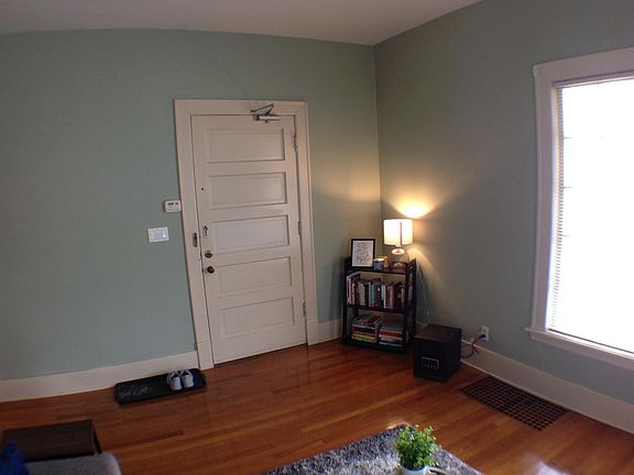 Super clean by Heritage Properties, this is a large one bedroom apartment with extra room for den, dining or office. Remodeled kitchen with dishwasher/disposal. Beautiful hardwood floors throughout. Lots of new windows and closets. Includes front porch, shared patio and private enclosed back porch with private storage room in basement. Assigned lighted parking for one car, coin op laundry. Has new forced air furnace and central A/C. No dogs. Cat negotiable. Trash pickup and water included. Tenant pays electric and heat.