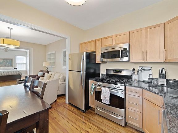Located in the heart of the gaslight district, with views of the Monument this renovated, 2 bedroom + office/nursery is steps from Charlestown's finest restaurants and shops. Soaring ceilings, warm hardwood floors are found throughout this gorgeous, open layout unit. The living room features custom built-ins and opens to an eat-in kitchen. The kitchen features granite countertops, maple cabinetry, and stainless appliances. A private deck is ideally located off of the living with views of the Bunker Hill monument. A spacious laundry room w/ washer/dryer & ample storage. The bath boasts a vanity with marble top, and tub/shower with marble tile accent. The sun-drenched master bedroom is spacious and features two, custom built-ins and an attached versatile room that can be used as an office, nursery or overused closet. Central AC!