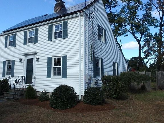 ..Lots of updates done on this spacious and efficient colonial . Just painted and carpeted new carpet in bedrooms..Kitchen has a bump out (2005) has tons of cabinets as well as stainless appliances, recessed lighting, newer Island with granite top..beautiful hardwoods on 1st level , fireplace living room, All windows installed in 2000..Gas conversion in 2011, solar panels 5 years old..garage door 2005..Bonus work room on 1st floor with wood stove.... 3rd bedroom on 1st level..could be small office.... Wonderful fenced in yard complete with storage shed, Paver patio, deck off kitchen and Brick barbecue area..