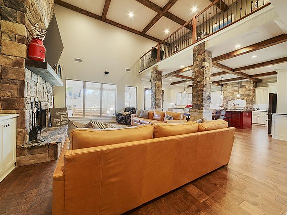 Incredible Estate on the course with fabulous views! This home offers 5 beds, 4 fulls baths, 3 car garage with extra exterior storage, inground pool with outdoor kitchen, outdoor fire pit & fireplace, oversized covered back porch, bonus room with builtins, formal office, entry locker area, custom kitchen with oversized island opens to vaulted living room with stone fireplace and cedar open shelves. Primary bedroom offers double sink vanity, separate slate shower, and jetted tub all flows into huge closet and into laundry space.
