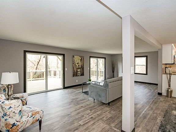 Remodeled 4 bedroom home situated on 1 acre wooded lot located just a few minutes away from the Coralville Lake. Upper level features a large attractive master suite with private bath, 2 walk-in closets and balcony. Beautiful, bright new kitchen with modern white cabinets, granite counters and all new s/s appliances. 2 newly constructed decks off formal dining and living room. An abundance of natural light. Over-sized living area with priceless views of nature. All new carpet and laminate flooring,