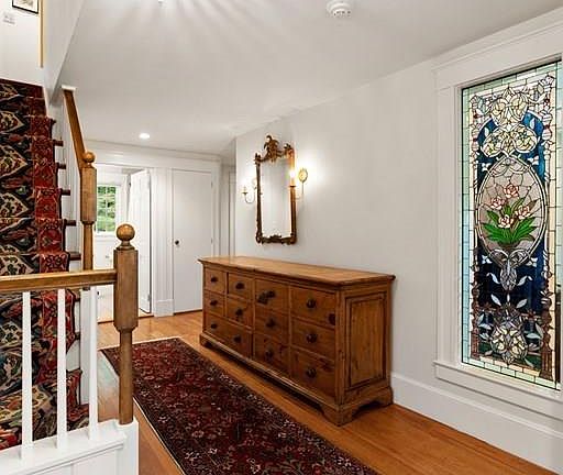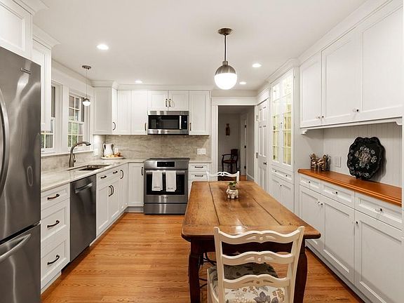 Charm, character & immaculate condition characterize this thoughtfully renovated & expanded cape style home which is privately set off the road. A living room with fireplace is adjacent to front foyer with stained glass detail & slate floors. The 2020 kitchen features stainless appliances, quartz & cherry counters & custom built-ins and blends seamlessly to the dining room with access to one of three brick patios. A gracious family room with fireplace, built ins & a window seat leads to a half bath & the screened porch. First floor master suite with 10 foot ceilings, transom windows, walk in closet & private bath with radiant heat is convenient to the office and back staircase. The second floor includes a second master bedroom with vaulted ceiling & private bath & two additional bedrooms & full bath. The sunny lower level with private entrance, full bath, wet bar & surround sound is perfect for relaxing, entertaining or guests.