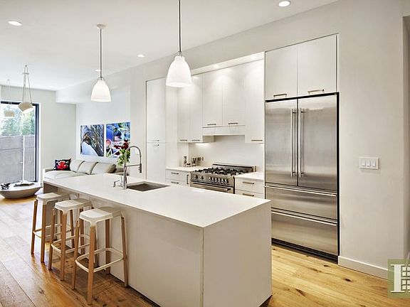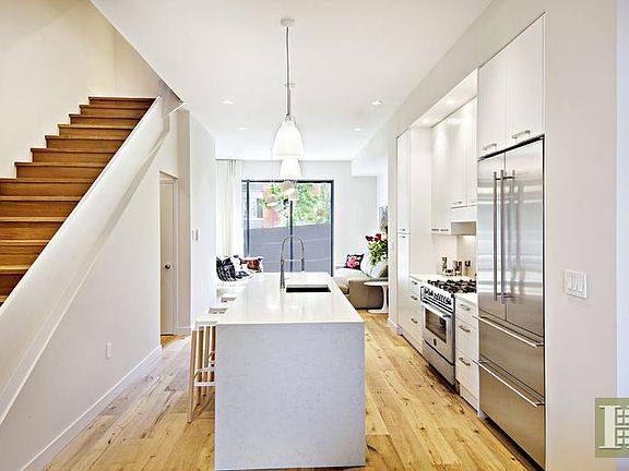 Contract Signed. Three Bedroom Townhome in Fort Greene This 2,897 square foot townhouse at Navy Green is an expansive and well designed home, boasting three bedrooms, two full and two half bathrooms, a media room, large laundry room, terrace, and garden with patio. The floors of each home are finished in 7 wide DuChateau natural wood and is equipped with a video intercom. Each home is individually deeded and owned outright. Just outside the private yard lies the community green which gives the project it's name. The 30,000 square foot park features walk ways, playgrounds and plenty of space for relaxing and taking in the view. The first floor is spacious and open creating a generous dining area and a large living area with the kitchen in the middle. The living area opens directly onto the patio for seamless indoor/outdoor living. The backyard is perfect for a summer BBQ and comes equipped with gas, electric, and water hookups. The open kitchen design features a large island topped with Frosty Carina caesarstone, stainless steel appliances by Betrazzoni, Bosch, Liebherr and a Giagni faucet. The second floor has two bedrooms, a full bathroom, and a large laundry room. The laundry room comes equipped with a LG 30 gas washer and dryer, sink, and plenty of storage. The third floor features the expansive master suite and the fourth bedroom. The on-suite master bathroom has a deep soaking tub, heated floors, double vanity with corian sinks, and glass shower stall with Grohe fixtures. The downstairs space has a huge media room, half bath and multiple walk-in closets. It's the perfect space for watching a movie with friends or getting away from it all. Navy Green's immediate neighborhood traces its history back to the 17th century, and includes a stunning mix of residential and industrial architecture. The area is a vibrant and eclectic mix of all things Brooklyn, from charming sidewalk cafs, to beautiful parks and world-class cultural institutions. It's only a few blocks to Fort Greene Park, an elegant space originally advocated for by the poet Walt Whitman and nearby restaurants line a pair of Brooklyn's hottest culinary streets, Myrtle and DeKalb Avenues. Across Flushing Ave lies the Brooklyn Navy Yard. Now a hub for innovation in industries including tech, film and even urban agriculture, the Navy Yard is a recognized Historic District with its eyes set firmly on the future. More than 200 businesses call the Navy Yard home. The complete offering terms for condominium units are in an Offering Plan available from sponsor. File No. CD15-0011. Artist renderings and interior decoration, finishes, appliances, and furnishings are provided for illustrative purposes only and reflect only the planned scale of the buildings and interiors. Not all items depicted in renderings are included in unit purchase.