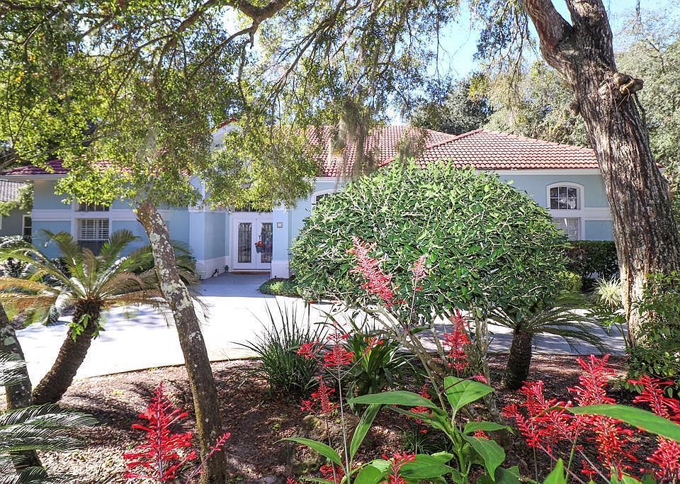 12' high ceilings, crown molding throughout, large picturesque windows in rear of home overlooking more than 1/2 acre of beautiful Florida landscaping. Property professionally landscaped and maintained. 8' patio doors with large transoms above in rear of home leading to patio & screened porch. Large updated & upgraded kitchen with plenty of cabinet/pantry space. Granite counters and shelves throughout home. Master bedroom with patio doors leading to screened porch and 12' double step ceiling. Master bedroom also has large windows with transoms above with architectural niches. 6' Jacuzzi type tube and glass enclosed shower. private area with commode. Oversized walk-in closed with custom shelving and cabinetry. Family room features 12' boxed ceiling with wood burning fireplace. Office/study included double french doors with large windows and transoms with 12' ceilings. Whole house generator & full lawn irrigation. Upgraded lighting package and many additional amenities.