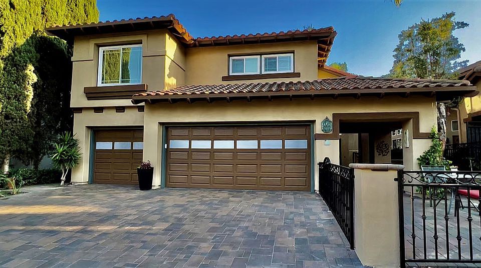 This freshly painted Marina Hills home has been reimagined as a Mediterranean villa where indoor and outdoor living come together as one. The driveway and exterior are graced by new pavers and outdoor lights. A wrought iron gate leads to a courtyard entry styled as a European bistro. The front doors open to reveal a living room with fireplace and soaring ceiling. Beyond French doors awaits the first of several outdoor living areas. Past the curved staircase is the kitchen with stainless steel appliances, Jenn-Air range, built-in double ovens, island with a second sink, and a walk-in pantry. The breakfast nook opens onto an outdoor dining area. The adjacent family room, which features a fireplace and wall-mounted TV with sound bar, opens to an outdoor living room under a covered trellis. Downstairs also offers a formal dining room, half bath, laundry room with sink, and doorway leading to the three-car garage with storage closets. Upstairs are four bedrooms, starting with the master suite, situated behind double doors and featuring south-facing picture windows, a bathroom with jetted tub and separate shower, his & her sinks, a potty room, and a large walk-in closet. The upstairs hallway leads to a spacious loft-office with built in bookshelves, a full bath, and three bedrooms: one a large room with double doors, another used as a guest bedroom, and another styled as an elegant office with built-in bookshelves and cabinets. New Anlin windows throughout the home provide sparkling views of the garden and hillsides beyond. The home sits near the edge of a broad canyon that’s dedicated open space, with a paved trail meandering west, parallel to Salt Creek, all the way to the beach - an ideal destination for a bike ride or morning hike. Ocean breezes flow up the canyon, swaying the property’s tall palm trees. Five upstairs ceiling fans circulate the fresh air, helping minimize use of the dual HVAC system. The house lies on a tranquil single-loaded street that ends at a cul-de-sac, making for a delightful enclave. The HOA fee allows access to an Olympic size pool, tennis and pickle ball courts, and other resort-like amenities available to residents of the exclusive Marina Hills community.