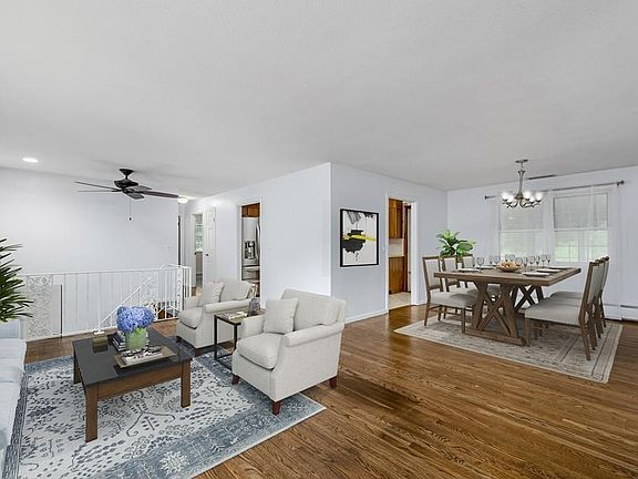 Super location for this move in ready Raised Ranch. Main floor features open concept living and dining area into kitchen with stainless steel appliances. Off the kitchen is a great enclosed sun porch with steps down to a brick patio and great yard space. There are also 2 bedrooms and a full bathroom. Downstairs you'll find a fireplaced living space with an additional 2 bedrooms or office space, laundry room, plus a full bath with tiled shower. Home has been freshly painted, one car garage, storage shed. Only a 5 minute drive to Trout Brook Pond Recreation Area, a golf course, 20 minutes to Wachusett Mountain or Worcester, easy access to I-190 and I-290. Close to center of town, too!