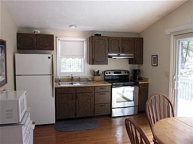 A sweet little year round house tucked in off a sandy road on the way down Old Wharf! A great location for people who like walking or kayaking!! Lots of sandy roads & trails in the woods & along the water. Adorable just as it is, with room for expansion; there is a full, walk out, unfinished basement with washer & dryer. There are hardwood floors throughout, two sliders leading to a spacious deck with stairs down to the yard & an outdoor shower. In the 8 years the seller has owned the house she has renovated the bath, added the ceiling fan, insulated the basement, replaced the sliders, added wood floors & the deck stairs. She also added a window to the bath, replaced the hot water heater & stove, installed outdoor lighting & added a clam shell driveway & path. The Seller rents it for $1300 a week & brought in $17,000 for this season.