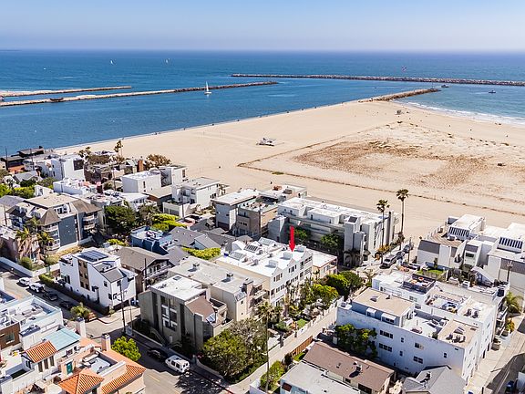 Just steps from the sand on the Marina del Rey Peninsula, this stunning architectural home offers ocean views and two private outdoor spaces designed for effortless coastal living. Inside, you'll find three spacious bedrooms and four beautifully appointed bathrooms, all thoughtfully designed with high-end finishes. Wide-plank wood floors, soaring ceilings, and LED recessed lighting set the tone, while a bright, expansive living room features a cozy fireplace and bi-fold doors that open to let in the ocean breeze. Home is partly furnished. The chefs' kitchen is a dream for cooking and entertaining, with a huge center island, sleek quartz countertops, top-of-the-line stainless steel appliances, custom cabinetry, and a dedicated dining area. Upstairs, two generously sized bedrooms offer comfort and privacy, while the entire third floor is devoted to the luxurious primary suite. Enjoy ocean views, a fireplace, an enormous custom walk-in closet, and a spa-inspired bathroom with dual vanities and a wet room featuring a deep soaking tub and bi-fold doors that open to a private rooftop terrace. Additional highlights include a 2-car attached garage with ample storage. This home feels like a peaceful getaway, yet it's just moments from everything the Westside has to offer. A rare opportunity to live in style just steps from the sand.