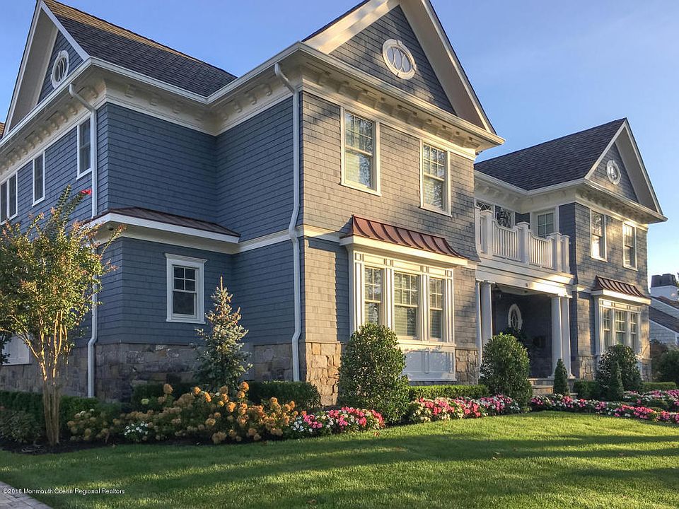 One of a kind, exquisitely designed, custom-built Seashore Colonial sits just one block to beautiful beaches in prestigious Spring Lake. Modern elegance at its finest, this six bedroom, six and a half bath smart home offers a first floor guest suite. The gourmet kitchen with adjacent breakfast room and butler's pantry, formal dining room with custom coffered ceiling, great room and den with built in wet bar are just some of the features that make this home so special. Billiard room, custom bar and home gym are part of the lower level features. Outdoor fireplace on your covered bluestone patio overlooks the meticulous grounds leading to pool with spa and outdoor grill kitchen.
