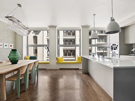 Encompassing the entire 10th and 11th floors of 16 West 21st Street, Residence Ten is a 3 bedroom, 3 bathroom (plus home office) duplex. Upon entry from the keyed elevator, the upper-level of the residence features a sprawling and bright Living Room. With its oversized picturesque windows and impressive ceiling heights, this massive space is perfect for a multitude of functions, including relaxation and entertaining. On the opposite end of this level, a large home office as well as the primary suite can be found. With an extensive walk-in closet, private balcony and spa-quality, en-suite bathroom with separate shower and soaking tub, the primary is truly a retreat large enough to accommodate not only a bed, but a large sitting area as well. The 10th floor (also accessed via keyed elevator) features an open chef-level kitchen with island. This kitchen is offers a large pantry and suite of Miele appliances, including coffee machine, oven, 5-burner cooktop and dishwasher. In addition, a built-in Sub-Zero refrigerator and Thermador wine cooler complete the space. This level also houses two additional bedrooms of impressive scale, one of which has a generous walk-in closet and en-suite bath. The residence also features a washer & dryer. 16W21 is a landmark, LEED Silver Certified boutique condominium with a gorgeous glass facade situated in the heart Flatiron District where Chelsea and NoMad converge. With amenities such as keyless entry to your apartment, doorman/concierge (9AM-9PM Monday through Friday and 12PM- 8PM on weekends), keyed elevator, package room/refrigerated storage, fitness center and a common roof deck, the building truly has it all. In close proximity to the very best of downtown shopping, dining, culture and nightlife. Please note, advertised taxes include NYC primary resident condo tax abatement.