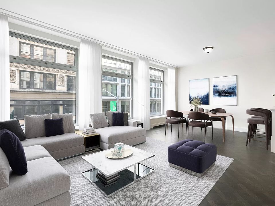 Tenant in place until September 2022. This is 2 Bedroom, 2 Bath Condo is located in an elegant boutique building in the heart of the Flatiron. Step off the elevator directly into your new home featuring solid White Oak flooring, custom designed wall and floor moldings, oversized north facing sound and thermal insulated windows, balconies in both bedrooms and a Bosch Washer and Dryer. The kitchen features Miele oven and dishwasher, Subzero refrigerator, Sub-Zero Wine Fridge and stainless steel countertops. The bathrooms feature Regency Noir and Trousadale Marble mosaic and Bosco Marble floors, Siberian and Venetian White marble wall tiles, countertops, and tub surrounds, Venetian stucco wall finishes, Zuma Whirlpool Airbath and Duravit Starck bathtubs, and radiant floor heating with programmable thermostats. Building features a part-time Doorman (9am-9pm Monday through Friday and 12pm-8pm Saturday and Sunday), Fitness Center (complete with shower, sauna, and steam room), and Roof Deck complete with a grill. Perfectly located just off Fifth Avenue it offers easy access to Madison Square Park, Eataly, shopping and transportation, and everything else New York City has to offer. Please contact us for an appointment.