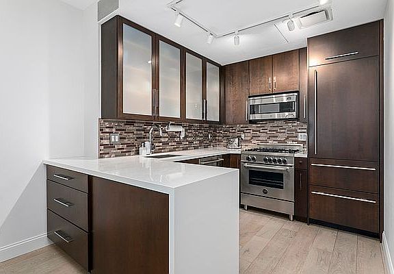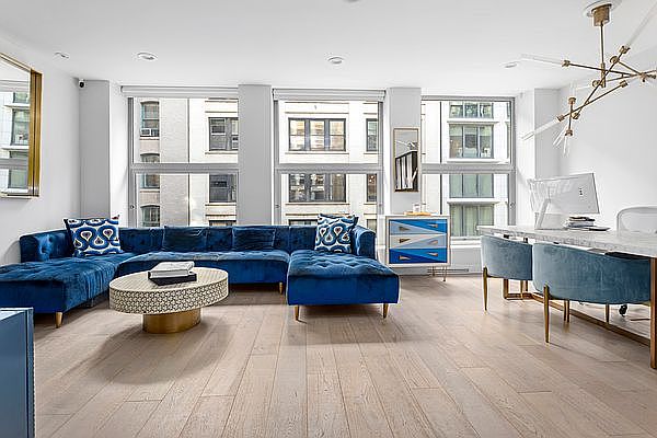 16W21 is a modern landmark building with an exquisite custom glass facade that frames the warmth of the light and vibrancy of the life within. Zac Posen, design wunderkind has crafted the building's interiors by coupling an artisanal philosophy with the most progressive vision, each of the unique residences and every inch of every common area balances the human and the modern, the handmade and the technological, so that your life here will be uniquely more satisfying, more personal and more creative. The living rooms at 16W21 spanning approximately 23 by 14 feet, boast generous proportions that privately accommodate the most alluring cocktail parties imaginable. With a suite of Miele appliances, sub-Zero refrigerator, expansive stainless steel countertops and bespoke color options, the custom designed kitchen at 16W21 is the perfect canvas for your culinary creativity. So while each full-floor residence offers house amenities such as keyless entry, doorman services, keyed elevator, spa & fitness center, refrigerated storage, package room, and a common roof deck, equal measures were paid to making an environmentally friendly building that is targeted for LEED Silver Certification.