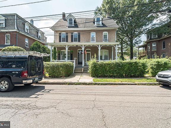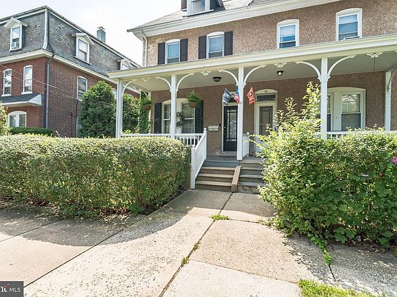 Welcome to this well maintained 5-bedroom,1 possible 2 full bath Lansdale borough twin. As you approach the walkway to this well-kept home you will first notice the alluring shrub lined porch. What a great spot to sit back and relax with a cool summer drink. Upon entering the front door into the living room, you will see the open floor plan and the glistening wood floors that flow from the living room into the formal dining room. This room offers a beautiful bay window, wainscoting, crown molding, and a ceiling fan. From the dining room you enter the large eat-in kitchen with slate flooring, breadboard walls, crown molding, stainless steel appliances, pantry, stone back splash, ceiling fan, and high-hat lighting. Adjacent to the kitchen is a large pantry, with a hallway to a side exit, the powder room and an open closet. Enclosed in the bottom of the closet is a tub so the powder room could possible be opened into a full bath. This completes the first floor and now onto the second floor that features a carpeted main bedroom with ceiling fan, closet and a door to the full bath. Next to the main bedroom is the full bath with double sinks and a tiled tub with shower. Adjacent to the full bath is the 2nd bedroom with a beautiful bay window, carpet flooring and a ceiling fan. Next to the 2nd bedroom is the 3rd carpeted bedroom with a ceiling fan and closet. Now up to the 3rd floor and 4th bedroom with a skylight, updated windows, carpet, closet and elect baseboard heat. Contiguous to the 4th bedroom is the 5th bedroom with electric baseboard heat, updated window, closet and skylight. Moreover, additional features for this home include a full basement with an outside exit, an updated 2015 gas heater + 2016 hot water heater, fenced back yard and a heated garage with 220 v electric. What a great workspace for the car or motorcycle enthusiast.