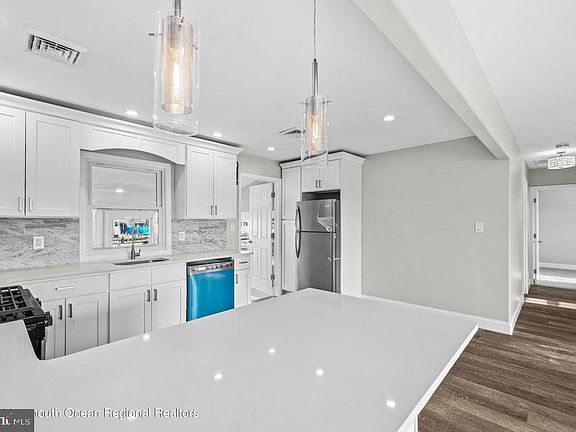 Enjoy this coming summer in a freshly renovated, move in ready, gorgeous shore home located close to the bay and the local restaurants & Shops, LBI and more! A 2 bedroom home complete with a brand new kitchen and bath, new flooring, new HVAC, New Roof, NEW VINYL BULKHEAD, 3 season room and a spacious open living room layout. Stainless Steel Appliances, white cabinetry over beautiful Quartz countertops! So much natural sunlight pours through this home during the day! Check out the HUGE garage!!! Plenty of storage space for summer toys