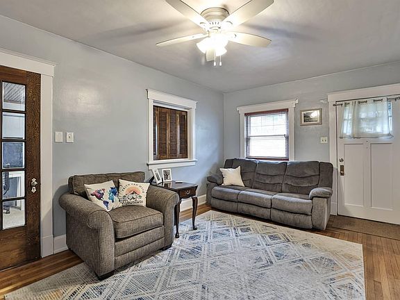 Make this adorable home yours! Features hardwood floors, updated bath, flex room that could be 1st floor/3rd bedroom, large bedrooms, updated Mechanics. Solid surface counters, tile floors in kitchen. Most windows were just replaced. Nice, inoperable fireplace with mantel. Off street parking in driveway.