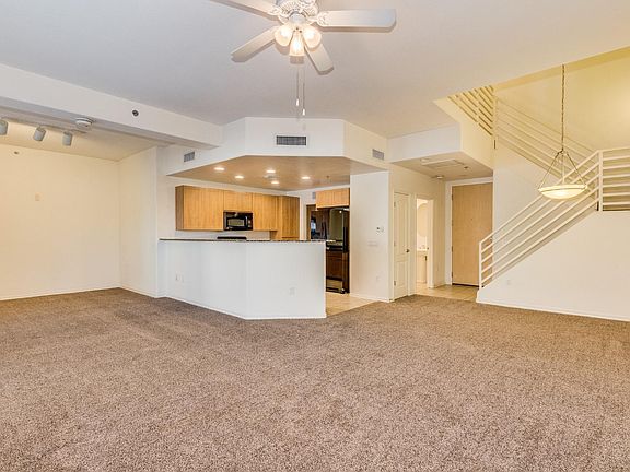 Downtown living at its best. Spacious 2 story condo with 2 bedrooms, 2.5 bath & area for office/den/play area. New carpet throughout & fresh painted interior walls. Short walk to Encanto Blvd light rail station for convenience. Kitchen with granite countertop, gas range & refrigerator. Washer/dryer included too. Open large family room with gas fireplace to relax & entertain with friends & family. Master bedroom suite with balcony, walk-in closet & 2nd closet. Master bath with separate shower, soaking tub & double sinks. Second bedroom with private bathroom. Half bath on 1st floor. Larger patio on 1st floor for patio furniture. Community has heated lap pool, spa, fitness center, sauna, theater room, gas grills & more. Two underground parking spaces. Walking distance to multiple restaurants, shopping, museums, golf & other entertainment places. Minimum 3 months lease at $2195, 6 months lease at $2095 & 12 months lease at $1995. Monthly rent includes: water/garbage/sewer, basic cable, hot water to the condo & sales tax. Two weeks free rent if lease start date is on or before 10/16/18. HOA pays water/garbage/sewer, basic cable & hot water.