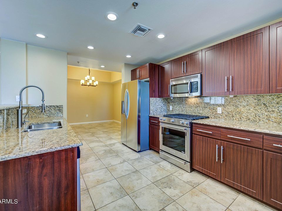 Exceptional Urban Living in Downtown Phoenix. Rare 3 bedroom 2 bathroom split floor plan flat that won an award from Midtown Urban Living Tour to boast one of the few largest patios in the whole Complex. Gourmet kitchen, granite counters. Anderson doors/windows. Travertine floors in a diamond shape, contemporary fireplace, custom lighting throughout and custom paint. Master has separate shower and tub, 2 closets & private door to patio. 3rd bedroom is without door (but easily installed) and has closet. Open great room with windows displaying the large patio area. HOA includes centralized water softener and hot water. Adjacent to the Willo Historic District. Amenities include clubhouse, theater room, pool, spa, sauna, gas grills, fitness center, underground/gated parking. A Walgreen's pharmacy, Mary Coyle Ice Cream.
