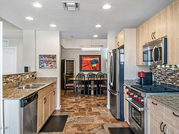 Motivated seller open to help buyers with closing costs or a rate buy-down! This beautiful 3 bedroom, 2 bathroom end unit luxury condo offers coveted views of Phoenix's downtown. The chef's kitchen offers granite counter tops, large island, stainless steel appliances and is even equipped with a top of the line Wolf brand range! Enjoy views of the community pool and Arizona's sunsets from the homes' spacious covered patio. Some of the property updates include updated ceiling fans, french doors leading to the guest bedroom, light and plumbing fixtures and so much more! Community amenities include an onsite gym, clubhouse, theatre room, sauna and lap pool. Two underground assigned parking spots and access to the community bike storage facility are also included.