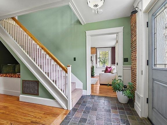 Stately historic Colonial nestled on 10+ acres of picturesque land exudes both charm & character blending old-world elegance w/ modern conveniences. From the moment you arrive the attention to detail reigns supreme w/ classic colonial architecture boasting intricate craftsmanship telling the story of a bygone era. Inside the spacious living areas are adorned w/ original HW floors & 8 fireplaces throughout. Natural light dances through the windows, casting a warm glow. The kitchen culinary haven caters to both the chef's aspirations & everyday practicality featuring SS appliances & huge 13 ft island made of reclaimed wood. Upstairs your private oasis awaits, complete w/ a luxurious spa-like full bath. Add’l bedrms provide comfort & flexibility, ensuring room for all. Unwind w/ a good book on the 3 season porch or upstairs in the 4 season porch. Outside the sprawling 10+ acres of land allow you to cultivate your own agricultural dreams, whether it's a thriving garden, orchard, or farm.