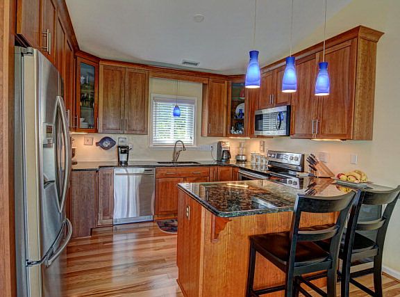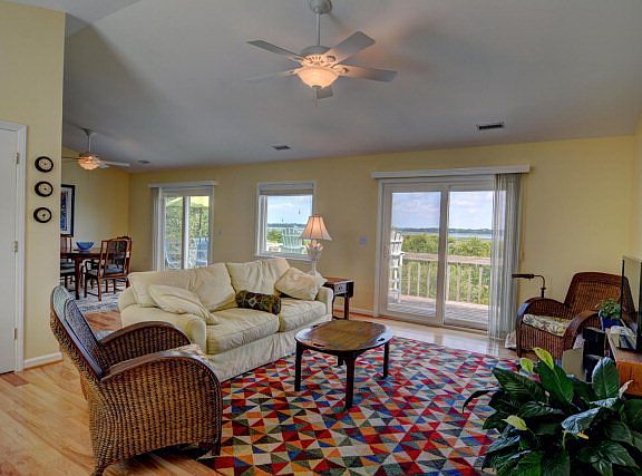 Immaculate 3 bedroom home on the water with dock and pier, beautiful natural gardens, screened in 'sunset' room on waterfront and million dollar views of the sound and ICWW. Private and quiet, the walkway to the almost new seawall and boat, dock meanders through beautiful natural ferns, gorgeous lilies and irises with a quaint wooden bridge over small pond, a gardeners paradise with very little maintenance. Throw a net and catch some shrimp off your dock for a fresh seafood treat and enjoy them with your favorite beverage while watching the sunset over the mainland from your screened waterfront room. Add a firepit in the winter and enjoy the oysters Stump Sound is famous for. A well marked channel takes you to the ICWW for boating excursions anywhere you want to go on the inland waterway The interior of the home is model worthy. Beautiful Bellawood solid hickory flooring in the spacious living area on the top floor with walls of special wind resistant windows installed in 2011 give unobstructed views of the ICWW and the mainland over acres of wet islands from inside or out on the deck across the width of the house. A ample dining area with a state of the art kitchen featuring cherry cabinets, special cabinet lighting, top line granite countertops and stainless appliances (including wine refrigerator)was added just 4 years ago. The first living level features three bedrooms all facing waterfront with an adjoinin expansive deck and two full baths.