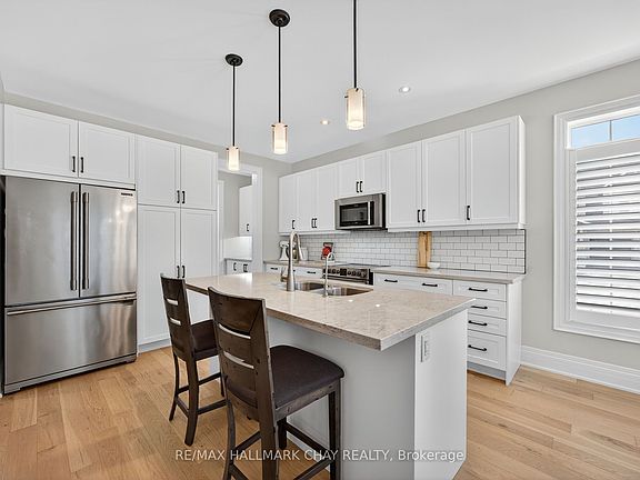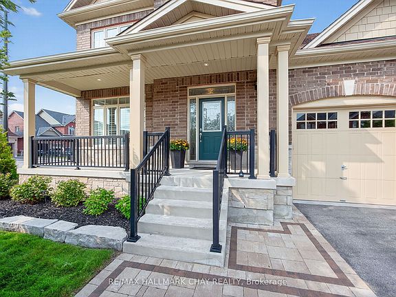 Tucked Away In The Heart Of Sought-After Stonemanor Woods, Just Minutes From Barrie, This Elegant Family Residence Rests On A Premium 70-Ft Frontage Lot And Boasts 2,600 Sq/Ft Of Sunlit Above-Grade Living. The Main Floor Greets You With Warm White Oak Engineered Hardwood Leading To A High-End White Kitchen Where Quartz Countertops, A Generous Centre Island & A Cozy Eat-In Nook Invite Morning Sunrises And Lively Gatherings, While A Discreet Butler Pantry Keeps Entertaining Effortless To The Adjacent Formal Dining Room. The Open Concept Living Area With A Gas Fireplace At The Focal Point Offers A Fireside Ambience Perfect For Intimate Evenings. A Private Home Office With A Door Provides A Quiet Retreat & An Oak Staircase Ascends To Four Serene Bedrooms, Anchored By A Primary Suite With Two Oversized Closets And A Spa-Like 5-Piece Ensuite Featuring A Glass Shower, Deep Soaker Tub And His-And-Her Sinks. With Practical Luxuries Like A Two-Car Garage With Inside Access, 9-Ft Ceilings And Oversized Windows That Flood The Interior With Natural Light, The Home Unfolds Outdoors To A Fully Fenced Backyard Framed By Mature Trees, A Beautifully Landscaped Patio And Utter Privacy A Tranquil Oasis For Entertaining Or Quiet Family Living.