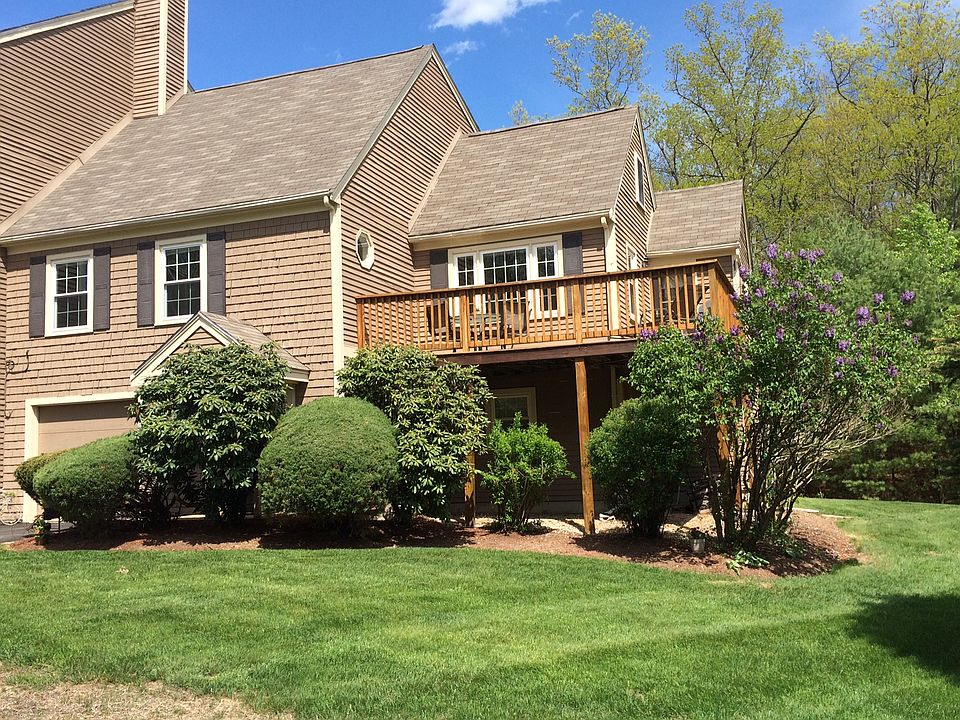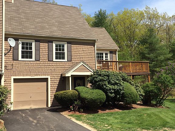 Highly sought after cape-style end unit in beautiful Bradford Woods. Quiet, spacious, and bright rooms. Large living room with wood burning fireplace and cathedral ceilings. This unique townhouse offers lots of storage with a finished bonus room across from the master bedroom-- make it a walk in closet, craft room, office, nursery ... your imagination is the limit! Private driveway leading to a single car garage with additional workspace in the back. Wrap-around deck for grilling and enjoying the sunshine. Updates: 2010-High-efficiency propane heat/hot water unit (Baxi); Solid Oak hardwood floors. 2010/2011-New double-pane windows; laminate in basement, bedroom ceiling fans; electrical outlets and hardware. 2012-New vanity, mirror, lighting & tile in guest bath. Custom blinds throughout house. 2014- upgraded garage door opener. 2015-Deck replaced. There are many things to do within the community which offers two clubhouses, pools, basketball and tennis courts. Enjoy a long walk in the woods on the many miles of trails on the property. This is the perfect home for an active family/ individual. Pet friendly community. * MOVE-IN CONDITION. Conveniently located to Manchester & Nashua; 5 minutes to Everett Tpke (Rt 3), 12 minutes to I-93 and Manchester-Boston Regional Airport.