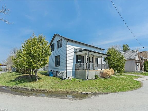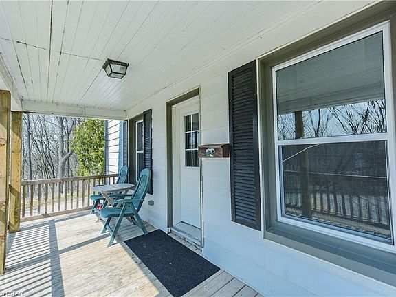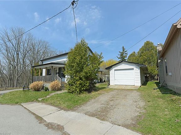 Great starter Home or Investment property! Located in Historic area on very private road, overlooking Ravine and woods. Has a large upgraded, covered front porch, an oversized garage with workshop or hobby room. - electrical outlets in both spaces. Roof, electrical, furnace and Central Air updated prior to 2011. Windows replaced 2011. Large 3 season Covered area off kitchen great for BBQ's, family get-togethers. Interior includes a main floor laundry hookup in the bathroom, Very Spacious Living room with newer hardwood floors and pot lights: 4 pc bathroom and kitchen with huge potential for upgrades. Upstairs has 2 pc bath and 3 bedrooms. Tenant moving out by May 1st.