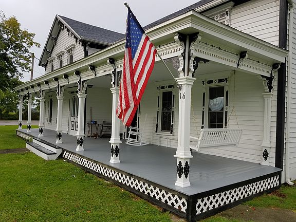 Believed to be a part of the Underground Railroad from bygone years. Historic Farmhouse - see attached information. Home has appealing open ,wrap around porch. Four bedrooms, full bath and a laundry room are on the second floor. Master bedroom has large walk-in closet with a window. First floor has a double parlor or separate family room/living room. Formal dining room boasts original wood floors. Current office/den could be a first floor fifth bedroom. A convenient full bath is on the first floor. Wood stove and fireplace are both NWTC. Furnace in attic services upstairs. Furnace in basement services main floor. Two hot water tanks.
