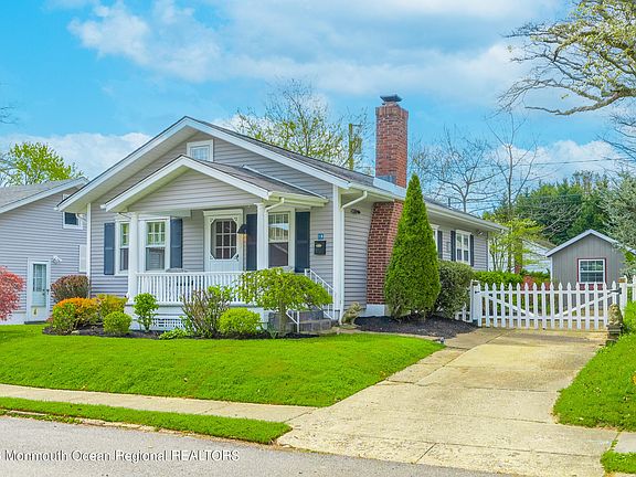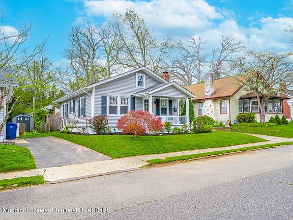 Move into this charming Bungalow home and start enjoying the Jersey Shore this summer! This well maintained 2 bed/1 bath features hardwood floors,, wood burning fireplace, covered open air inviting front porch, updated kitchen w/ shaker style cabinets & stone counters, updated bathroom w/ spacious walk in shower, large dry basement (due to French drain system), w/ tons of storage. Outside boasts ample off street parking, new sod in front & rear yard, outdoor shower, paved area for dining & grilling, professionally landscaped w/ specimen trees and shrubs, gated back yard plus a bonus 100 square foot studio space perfect for office, work out, art space, etc. Consider the possibility of expanding this home w/ an additional 910 square feet by adding a 2nd floor. Well located in a peaceful neighborhood, yet close to shops, grocery, golf course, restaurants. salons, deli, etc. Double bonus is exciting Asbury Park beaches, boardwalk and downtown is a little less than 2 miles away.