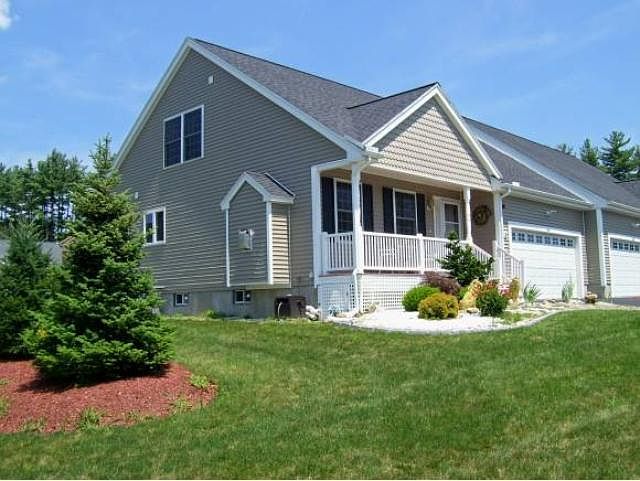 FIVE STARS!!! This two-story 1749 sq/ft Pinnacle home, with GREAT features such as a living room with cathedral ceilings and a clean, convenient Natural gas fireplace, hardwood flooring throughout, a delightful eat-in kitchen with granite counters, 1st floor MBR with bath and walk-in closet, second level with bedroom, full bath, and loft(possible third bedroom), 20X22 attached 2-car garage, all very good...PLUS: POWER AWNING OVER YOUR DECK with lattice screen for privacy and ambiance, ATTRACTIVE NEW LIGHTING, and the 52-in FLATSCREEN TV ABOVE THE FIREPLACE!!!! VERY low condo fee of $220 makes this a tremendous value, just minutes from Manchester Airport and Rt.293. If you are looking for 55+, and want the BEST DEAL around, you owe it to yourself to visit this property! Opportunity is knocking!