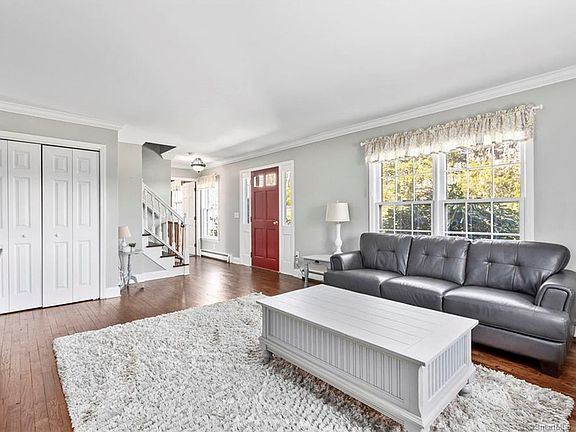 Bright and Beautiful 4 Bedroom Colonial in the desirable Chimney Heights neighborhood. Updated inside and out with newly refinished hardwood flooring, new fireplace/mantle, updated bathrooms and fresh paint throughout. The spacious main level has formal living and dining rooms, a roomy powder room with laundry and cozy eat-in kitchen with stainless appliances and new flooring that opens to the Family Room with wood burning fireplace and access to the large garage (with no steps leading into the house). Also on this level youll find a huge screened-in porch with high ceilings, perfect for enjoying or entertaining in any season. The porch leads to the back deck and the expansive, private yard with plenty of room for gardens and play areas. Upstairs offers 4 roomy bedrooms with hardwood flooring, plus a beautifully updated hall bath. The primary bedroom suite has a walk-in closet and modern, updated bathroom with walk-in shower, dual sink vanity and custom barn door entry. Also featuring central air and sewer line in place for future usage (septic currently hooked up). Ideal location, tucked back privately off the road, yet just two minutes to Target and I-84 exit 8. Also convenient to charming downtown Bethels many shops, community activities and trendy restaurants. Just unpack your bags and enjoy!