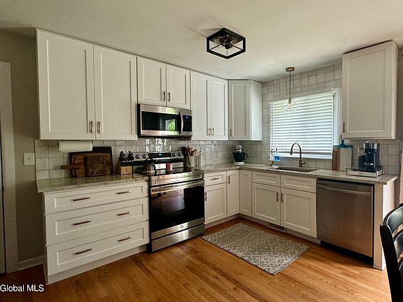 Beautiful updated ranch centrally located in Colonie. Large fenced yard, close to shopping, restaurants, easy access to Northway and short walk to The Crossings recreational park. Updates include new kitchen, front door and entry door from garage (2022), refinished hardwood and new sump pump w/backup system (2020).