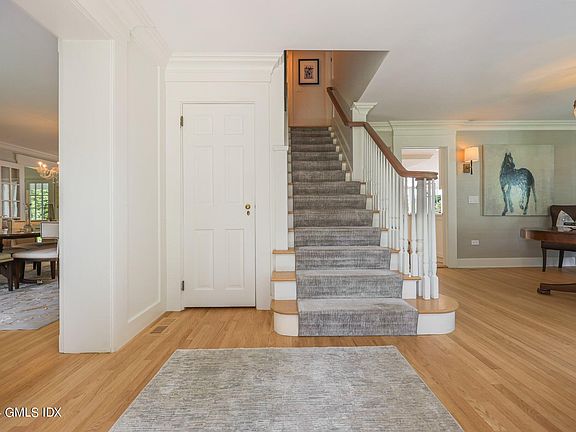 Unexpectedly spacious Riverside Colonial with flexible floor plan. Beautifully appointed eat-in kitchen/family room. French doors to deck and French doors to a beautiful terrace and covered porch with great entertaining space. First floor has a lovely entry and a second family room/living room off the extra-large dining room. 5 bedrooms and 5.1 baths. Primary bath with heated floors, heated towel bar, steam shower and whirl tub. Finished 3rd floor with 2 bedrooms and full bath. LL offer game room with fireplace, gym and ample storage. Tax card does not include LL sq. footage. Very nice off street parking and beautiful private gardens on .40 of an acre. Close to schools, train and Old Greenwich Village on wonderful Wesskum Wood.