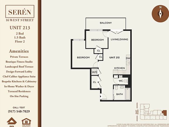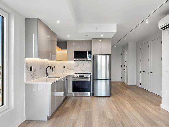 Refined 2 Bedroom, 1.5 Bathroom with Outdoor Space Quietly refined and filled with light, this twobedroom residence at The Seren opens to an expansive, openconcept living area framed by floortoceiling windows. A private balcony extends the home outwardmade for slow morning coffee or an easy evening unwind. The designer kitchen is streamlined and functional, with stainless steel appliances, a dishwasher, and sleek cabinetry. In the bedroom wing, generous closets keep everything tucked away, while the spainspired bathwith contemporary fixtures and a deep soaking tuboffers a calm reset at day's end. Everyday comforts include an inunit washer/dryer and central heating and cooling, all within a boutique new development along Greenpoint's waterfront. Unit Features Expansive openconcept layout that lives large and flows naturally Floortoceiling windows for incredible natural light and open outlooks Private balcony for coffee at sunrise or relaxing at dusk Designer kitchen with stainless steel appliances, dishwasher, and sleek cabinetry Spainspired bathroom with contemporary fixtures and deep soaking tub Inunit washer & dryer for everyday convenience Central heating and cooling for yearround comfort Thoughtful storage, including a large closet Building Amenities Resident lounge designed for relaxed gatherings and quiet downtime Coworking lounge & private conference rooms for focused WFH days Fitness studio with cardio and weights to keep your routine close to home Rooftop lounge/terrace with panoramic Manhattan skyline and East River views Package room, bike storage, elevator, and virtual doorman for seamless daily living Game room for casual play and neighborly connection NEIGHBORHOOD Greenpoint, tucked along Brooklyn's northern waterfront, blends treelined streets and cinematic skyline views with a dynamic foodandculture scene: legendary pies at Paulie Gee's, cultfavorite tacos at Taqueria Ramirez, refined comfort at Chez Ma Tante, ambitious livefire cooking at ILIS, and the woodfired, Michelinstarred magic of Oxomoco. By day, wander to Transmitter Park for river breezes, browse independent boutiques and studios, and recharge in nearby McCarren Park; after dark, choose from craftcocktail bars, cozy vinyl lounges, and buzzing music venues, with Williamsburg, Long Island City, and Manhattan just a quick hop via the G train or NYC Ferry. The result is an inviting mix of waterfront calm and creative energywhere destination dining, everyday essentials, and latenight adventure are all close at hand. TRANSPORTATION Subway: G Greenpoint Av (0.4 mi, ~89 min walk) NYC Ferry: Greenpoint/10 India St landing (0.2 mi, ~45 min) with direct service to LIC, Midtown (E 34 St), DUMBO, and Wall St/Pier 11. Buses: B32 (Franklin St) and B62 (Manhattan Av) stops ~26 min away; direct to Williamsburg, LIC/Court Sq, Downtown Brooklyn, and Queens Plaza. Citi Bike: Dock at India St & West St (0.1 mi, ~23 min). Driving: Quick access to BQE (I-278) via Meeker Ave/McGuinness; near the Kosciuszko & Williamsburg Bridges and LIE (I-495). Parking: On-site garage (fee; subject to availability) plus neighborhood street parking (observe alternate-side rules). Broker Fee: No broker fee is charged by the landlord or the landlord's agent. Equal Housing Opportunity. Features and finishes may vary by residence. All measurements are approximate.