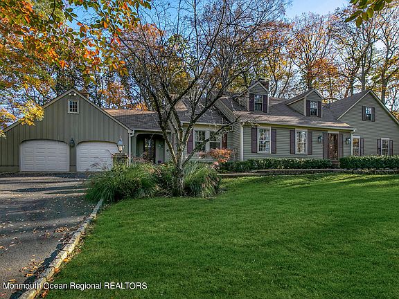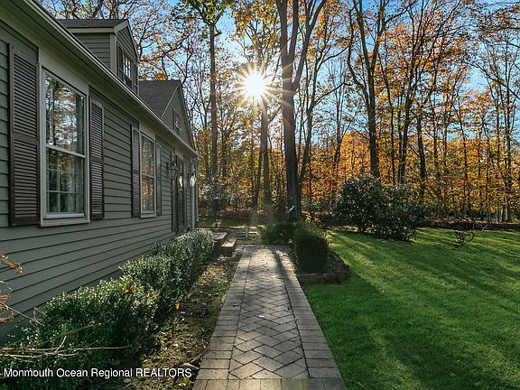 Appealing interior design, wood floors, decorative moldings, arch doorways & custom built-ins are only some of the many features offered. Bright &open foyer welcomes you home. Elegant dining room, classic living room & warm, inviting family with a rustic brick woodburning fireplace makes this home so charming. Large country kitchen is complete with huge center island, rich wood cabinetry & high-end appliances. Fabulous primary bedroom offers walk-in closet. All bedrooms are open, airy & generous in size with plenty of closet space. Home also offers a mud room, laundry room, home office, large 2 car garage & partially finished basement with endless possibilities. Enjoy summertime fun in the private & serene backyard with a paver patio all surrounded by beautifully mature trees & greenery. Living in Colts Neck offers a great sense of community pride is close to gorgeous beaches, parks, horse farms, golf courses & NYC transportation.