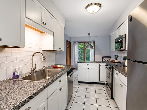 Why rent when you can own this gorgeous updated condo! This townhouse style condo offers an updated kitchen with breakfast nook, hardwood floors, open dining/living area with sliders to a private covered deck, full finished walkout basement with attached 1 car garage. The upper level features two spacious bedrooms, an oversized bathroom, covered balcony off of master bedroom as well as skylights that provide tons of natural light. Everything you are looking for at an unbeatable price! Super convenient location for commuters! Rare HUD approved complex!