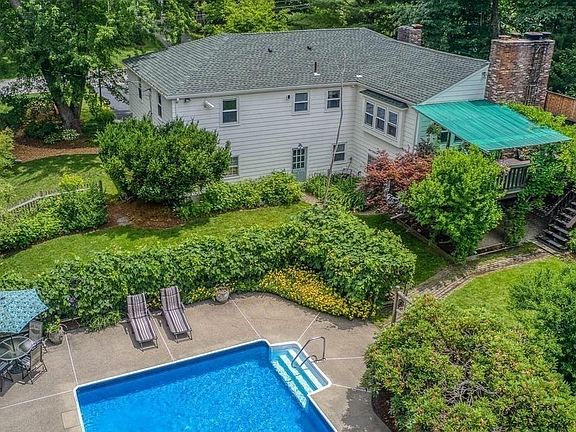 OH FRI 8/5 5-7. SAT 8/6 11 - 1:00. Desirable open floor plan & close to Hopkinton downtown. Landscaped .72 level lot this home has a beautiful backyd w/great privacy, beautiful gardens, lovely bluestone front steps & fabulous heated inground pool w/very cool cabana. Access trail from backyard. Appx 1mi to rte 495, quick access to Rte 90 & commuter rail. Spacious 1st flr has lovely LR that opens to a desirable, very open living area w/a white kitchen, DR & fabulous FR w/dramatic FP, cathedral ceiling, refinished pine flr & slider to a large wrap-around deck. The 3 bedrms are privately tucked away from the main living area. There is a PRbedrm w/its own full bathrm & a very nice main bath. Great hardwds in LR/DR/hall/3 bedrms. LL has a spacious FR, large home office w/generous built-ins, workshop & half bath w/W&D. Heated pool surrounded by lush gardens ~ your own oasis. Updates:New Septic System to be installed, House & Shed roof, pool pump, painted, HTP Boiler..Quick close possible.