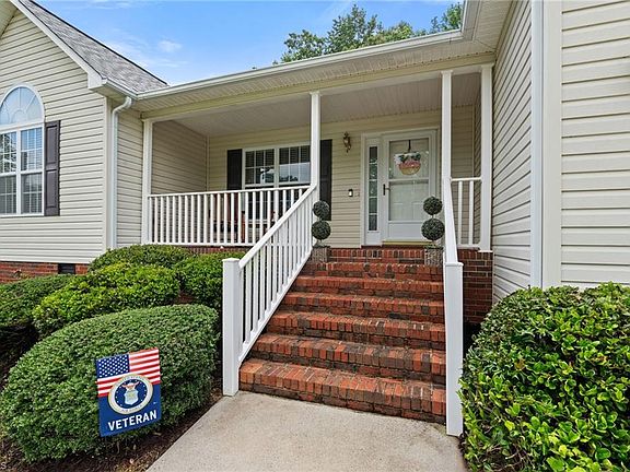 Showings begin Friday 6/5/25. Experience comfortable living in this well-appointed 3 BR/2 BA home, featuring a new roof installed in 2021! Designed with a highly sought-after split floor plan, this home offers ultimate privacy. The private primary suite is a peaceful retreat, boasting two generous walk-in closets and a luxurious primary bath with a double vanity. Two additional generously sized secondary bedrooms and a full bath are thoughtfully located on the other side of the home. The heart of the home boasts vaulted ceilings, built-in shelves, and gas logs. The eat-in kitchen offers a convenient kitchen island perfect for baking and cooking. All kitchen appliances stay, including the washer and dryer, making move-in seamless. Outside, you'll adore the quintessential rocking chair front porch for relaxation. The convenient deck just off the kitchen is ideal for grilling out and making outdoor meals and entertaining a breeze. Don't miss the opportunity to make this home your own!