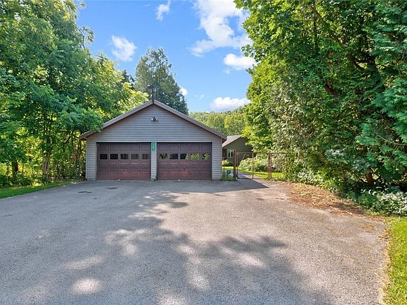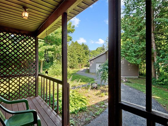 This property is set in a unique, wooded area. The house sits behind a 2 bay car garage capable of holding 3 vehicles. In addition to multiple parking spaces, the garage contains an area for a Wood-shop with wall mounted heater and 3 storage bay sheds attached to the back. House cannot be seen from the road. Very private and quiet. Set on 3.59 acres of beautifully lush nature. All the qualities of the country tucked away in the city. This 2200 square ft. home was custom designed, and is not a cookie-cutter house.